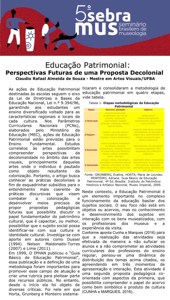 GT 16 - MUSEOLOGIA E PATRIMÔNIO CULTURAL NEGRO: ANCESTRALIDADES, LUTAS E EXISTÊNCIAS