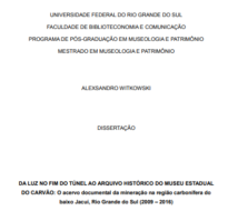 Dissertação Da luz no fim do túnel ao Arquivo Histórico do Museu Estadual do Carvão: O acervo documental da mineração na região carbonífera do baixo Jacuí, Rio Grande do Sul (2009 – 2016)