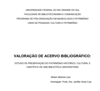 Como referenciar: LOSS, Miriam Moema. Valoração de acervo bibliográfico: estudo de preservação do patrimônio histórico, cultural e científico de uma biblioteca universitária, 2019, 91f. Dissertação (Mestrado em Museologia e Patrimônio) - Faculdade de Biblioteconomia e Comunicação, Universidade Federal do Rio Grande do Sul, Porto Alegre, Brasil, 2019. [negrito ou itálico no título]
