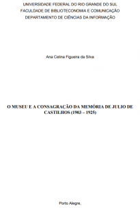 Monografia defendida em 2011 pela discente Ana Celina Figueira da Silva sob orientação da professora do curso de Museologia, Zita Rosane Possamai. Compuseram a banca avaliadora as professoras Marlise Giovanaz e Lizete Dias de Oliveira. O ano de ingresso no curso foi 2008 e de conclusão em 2011. Realizou estágio não obrigatório no Memorial da Câmara Municipal de Porto Alegre e estágio curricular obrigatório no Museu da UFRGS e Museu do Colégio Americano. Também atuou durante o curso, no Museu da Comunicação Hipólito José da Costa. Foi curadora da exposição curricular Do Confessionário ao Wireless: Landell de Moura, o padre inventor (2011). Possui registro profissional junto ao Conselho Regional de Museologia da 3ª Região sob número 0144-I. Atuou como museóloga no Museu do Colégio Americano e prestou concurso público para carreira do magistério superior da Universidade Federal do Rio Grande do Sul (UFRGS) em 2013 e desde 2014 integra o quadro de professores do Departamento de Ciências da Informação desta Universidade, atuando no curso de Museologia. Licenciatura em História (1996), Mestrado em Ciência Política (2003) e Doutorado em História (2018), todos pela UFRGS. Em 2021 passou a integrar o corpo docentro do Programa de Pós-Graduação em Museologia e Patrimônio da UFRGS.