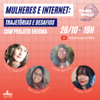 • Copia digital de card de divulgação da live “Mulheres e internet: trajetórias e desafios”, da exposição Emaranhado: Reflexões sobre a Cibercultura