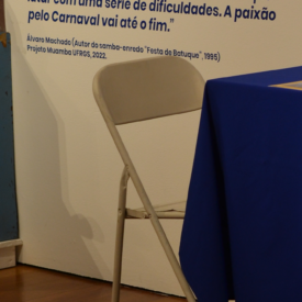Início > Coleções > Exposições Curriculares > Cópia Digital de imagem de frase adesivada localizada no núcleo 3 que fez parte da exposição “No batuque dos Bambas da Orgia – Folia e resistência em Porto Alegre”