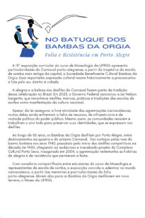 • Cópia Digital do adesivo do texto curatorial da exposição “No batuque dos Bambas da Orgia – Folia e resistência em Porto Alegre”
