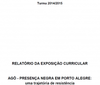 Livro relatório da Exposição "AGÔ – Presença Negra em Porto Alegre: uma trajetória de resistência", com aproximadamente 138 páginas, em folha A4 grande maioria branca, em papel oficio e também com algumas folhas de papel reciclado. Com capa e segunda capa de plástico, sendo a capa transparente e a contracapa em preto. Com argola preta de plástico a qual segura as folhas para que estas não caiam.