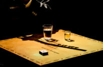 Esta fotografia foi retirada no dia de abertura da exposição, denotando de forma intencional a disponibilização dos objetos em cima da mesa, buscando realizar o resgate da memória e da história desta cultura de relevante importância para a cidade de Porto Alegre. Através de uma estrofe da música de Nelson Rodrigues, que foi um dos grandes nomes da música negra da cidade, um verdadeiro boêmio, na qual ele canta temas de amor e sofrimentos amorosos. Um verdadeiro resgate musical para se retratar através da plotagem instalada na mesa. Mesa esta que era sugestiva para fazer com que um teletransporte através das linhas do tempo, levassem os visitantes a uma época de tentar ser reconhecido culturalmente em meio a sociedade como um todo. Foto tirada pela Turma BIB03217 Prática de Exposições Museológicas 2015/1.