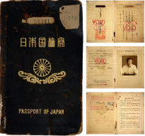 Painel do núcleo Visto e Passaporte, que se encontrava na segunda entrada do mezanino do Museu da UFRGS, em frente ao elevador. O núcleo apresentava dois painéis, um com a imagem de um visto de permanência e outro com passaportes, que se encontram no Memorial da Colônia Japonesa de Ivoti. O núcleo buscava mostrar a intenção desses imigrantes com sua vinda ao Brasil, trabalhar na terra e constituir suas famílias.