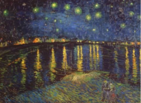 “A Noite Estrelada sobre o Ródano” é uma pintura de 1888. O quadro foi pintado após a sua mudança para Arles, no sul da França, nove meses antes de ser hospitalizado e dois anos antes de suicidar-se. A obra retrata a paisagem vista à noite à beira do Ródano, um importante rio europeu. É possível que um esboço enviado para o seu irmão fosse baseado na composição original. De acordo com alguns críticos de arte, a representação das estrelas seriam uma expressão do eu lírico do pintor. Apesar de todo esplendor cromático encontrado na obra, o quadro apresenta uma certa calmaria, diferente de outras obras do pintor, carregadas de perturbação mental