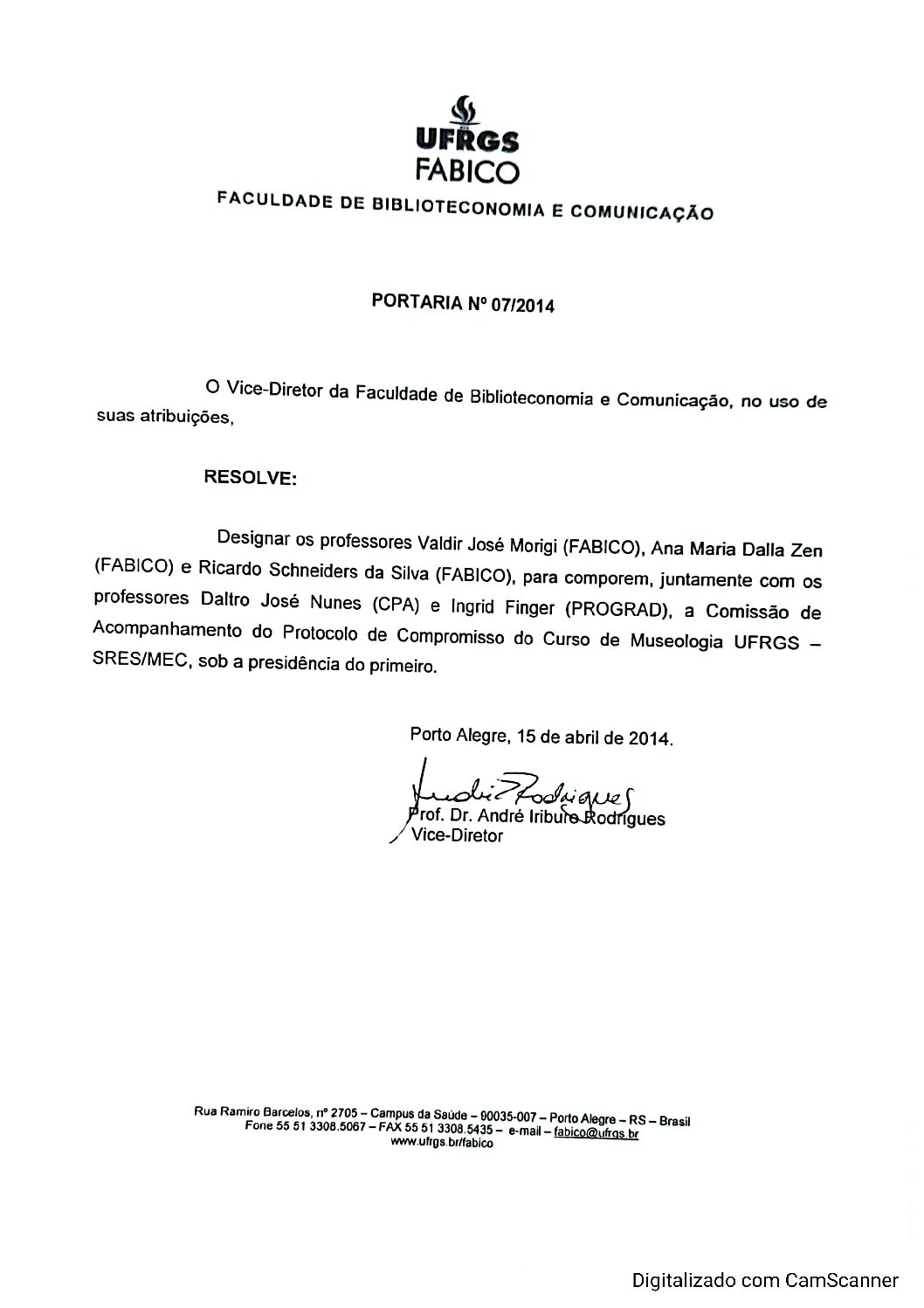 • Cópia digital do Protocolo de Compromisso do Curso de Museologia