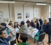 Oi, tudo bem? O meu nome é Adelaide. Eu vou contar um pouquinho da viagem de Jaguarão. Foi minha primeira viagem com a faculdade. Foi uma experiência bem, bem boa, maravilhosa. A gente saiu meia noite lá da Casa do Estudante e chegamos às sete horas... seis horas ali em Jaguarão. Foi uma viagem bem tranquila, assim, todo o percurso, tanto na ida como na volta. Sete horas a gente se encontrou com a professora de História da UNIPAMPA, da faculdade de Jaguarão e fizemos um café coletivo ali, para matar um pouquinho a fome e ela apresentou um projeto que ela tem com um pessoal da faculdade voltado para a cultura negra e contou também que ela faz parte de um projeto com o acervo do Clube 24 de Agosto, um clube social negro da cidade de Jaguarão. Enfim... ela contou desse projeto dela com a faculdade. Nós vimos um vídeo, foi uma experiência bem legal. Aí nós vimos uma exposição das rainhas que o clube teve. E daí tem desde a década de [19]20 até atualmente, assim... com relatos, sabe? E teve um mural também contando as experiências e eu achei comovente como foi mudando, sabe? Tu consegue ver a mudança de vestimenta, consegue na expressão, na fala, a emoção e eu achei muito bonita a exposição. Depois nós fomos para o Clube 24 de Agosto e conhecemos o Seu Madruga, que é o diretor do clube, muito, muito simpático. Lá no clube tinha as fotos das rainhas, tinha as fotos dos diretores. Quando a gente chegou lá, inclusive, o salão estava sendo arranjado assim, estava sendo decorado para uma festa de 15 anos, que mostra que o clube está muito integrado na comunidade até hoje, e não só na comunidade de maior idade né, mais os jovens também. Elas estavam contando lá dos bailes que tem, começa com o baile para maior idade e aí depois tem o baile com as músicas mais jovens e tal e que os velhinhos não vão embora. Os velhinhos ficam, sabe, se divertem junto e eu achei bem legal saber disso, eles contaram que cada vez mais a população jovem tem participado ali do clube. Aí nós conhecemos o acervo, muito bem acondicionado, muito bem preservado. Ela contou que ela ensina os associados do clube também a cuidarem do acervo né, porque o maior interesse vem deles com relação ao acervo. E ela contou que ela ensinou, se não me engano, ou era o neto ou o filho do Seu Madruga, diretor do clube, a fazer as pastinhas de papel neutro para guardar as fotografias, sabe... que ele está nesse processo já faz mais de quatro anos e que cresceu muito assim. Todos os objetos tridimensionais com TNT, tudo bonitinho, arranjadinho e eles também estavam com projeto pra fazer uma rede de conexão com outros clubes sociais negros do Rio Grande do Sul. Conseguiram de Pelotas, conseguiram vários lugares assim, e eu achei bem interessante esse projeto deles, muito bom. E tu consegue ver assim a importância que tem para a comunidade, tanto de suprir uma necessidade que o governo não cobre, tanto como um clube social para se juntar, dividir cultura sabe? E eu achei isso muito lindo, vendo na prática. Todo mundo ali montando a festa, e as amigas da aniversariante correndo de lá para cá, o pai emocionado, foi lindo assim. E fiquei muito feliz em saber desse clube, em conhecer pessoalmente. Foi uma experiência bem boa.