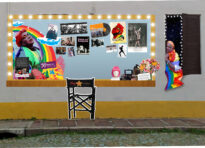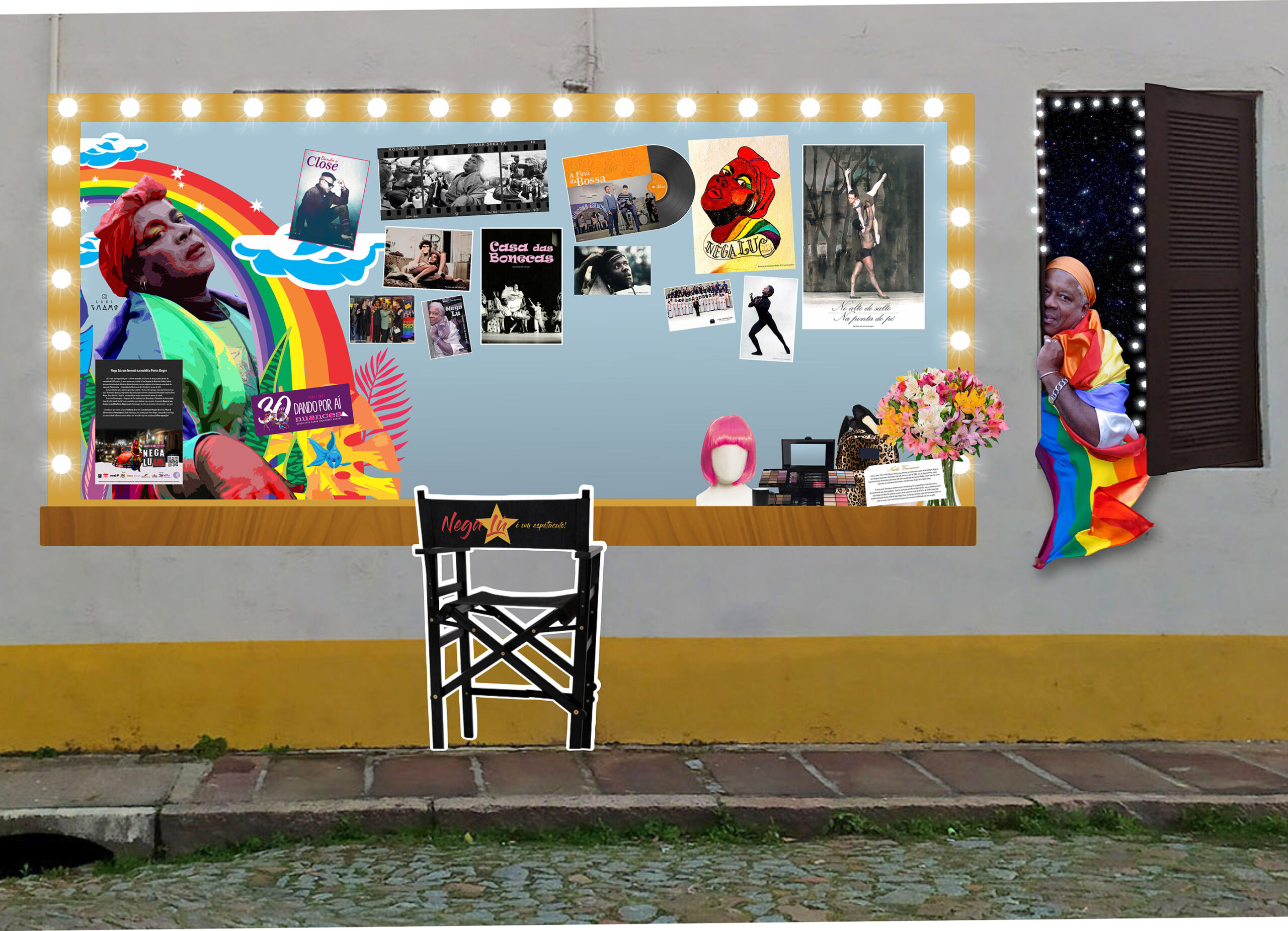 O objeto nato digital apresenta uma sobreposição digital em uma foto de uma parede cinza e amarela que pode ser identificada como parte da fachada externa do Bar Venezianos. Digitalmente foi inserido o painel e a plotagem na janela com o estudo da iluminação embutida nas peças que compõem elementos da exposição: "Nega Lú: Um frenesi na maldita Porto Alegre".