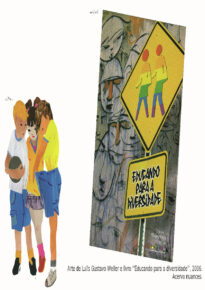 O objeto digital nato apresenta duas artes com a temática "Educando para a diversidade. A primeira arte localizada no centro à esquerda é de três figuras humanas interagindo. A segunda arte, posicionada no centro à direita é a capa de um livro, o fundo do livro contem diversos rostos desenhados em estilo abstrato. Sobre este desenho é possível ver uma placa de trânsito amarela em forma de losango com duas figuras humanas estilizadas listradas com as cores vermelho, laranja, amarelo, verde, azul e roxo. Em baixo há uma placa de trânsito quadrada e amarela com os escritos "Educando para a diversidade"