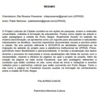 Resumo para o Salão de Extensão da UFRGS, no ano de 2016, apresentando o projeto Leituras da Cidade, projeto de Educação Patrimonial com vistas à formação de graduandos dos cursos de História, Museologia e Pedagogia da UFRGS e educadores da rede de ensino de Porto Alegre.